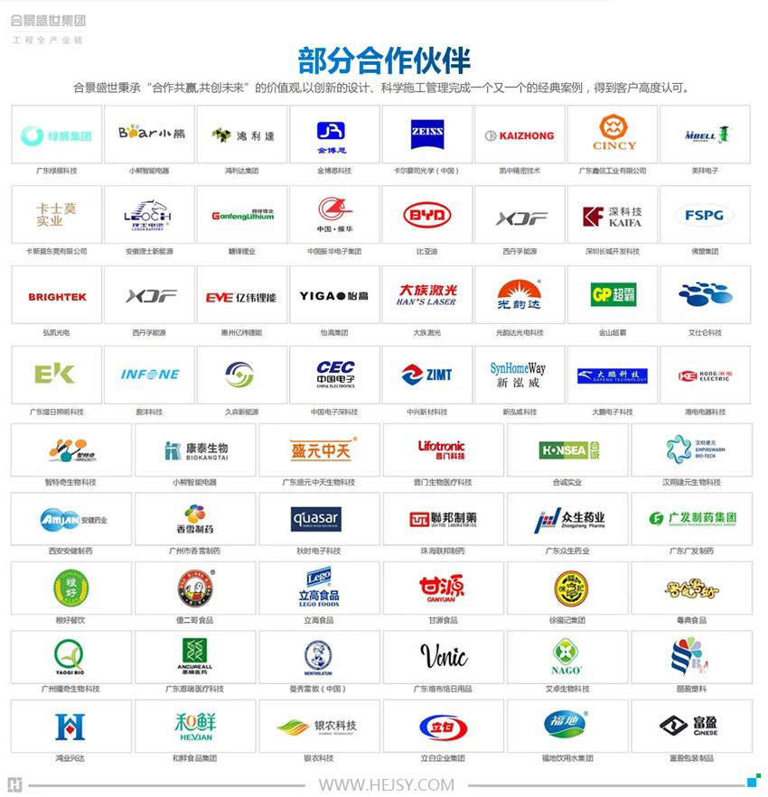 合景智慧建設(shè)(廣東)有限公司作為機(jī)電凈化工程、辦公室裝修工程建設(shè)EPC總承包行業(yè)標(biāo)桿企業(yè),20余年行業(yè)專注,以創(chuàng)新工藝技術(shù)、完整的產(chǎn)業(yè)鏈和完善的服務(wù)體系,在電子工業(yè)、新能源電池、醫(yī)療器械、生物制藥、食品日化等多領(lǐng)域建設(shè)了無(wú)數(shù)優(yōu)質(zhì)項(xiàng)目,好評(píng)如潮。