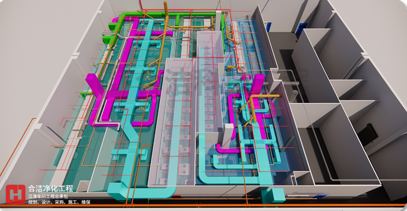 BIM 技術(shù)可應(yīng)用于工程項目規(guī)劃、設(shè)計、施工、改建、運(yùn)維等范圍,為產(chǎn)業(yè)鏈貫通、工業(yè)化建造和建筑創(chuàng)作提供技術(shù)保障。合景智慧建設(shè)(廣東)有限公司在潔凈廠房工程建設(shè)中,以BIM技術(shù)為全周期模擬,對工程全局,即潔凈環(huán)境、人流物流、暖通、電氣工程、整廠能耗、質(zhì)量、安全等方面提供方案優(yōu)化和科學(xué)決策提供依據(jù),與各專業(yè)協(xié)同工作、項目的虛擬建造和精細(xì)化管理,為工業(yè)潔凈室建設(shè)提質(zhì)增效、節(jié)能環(huán)保創(chuàng)造條件,虛實(shí)結(jié)合,賦能項目,打造交鑰匙項目。
